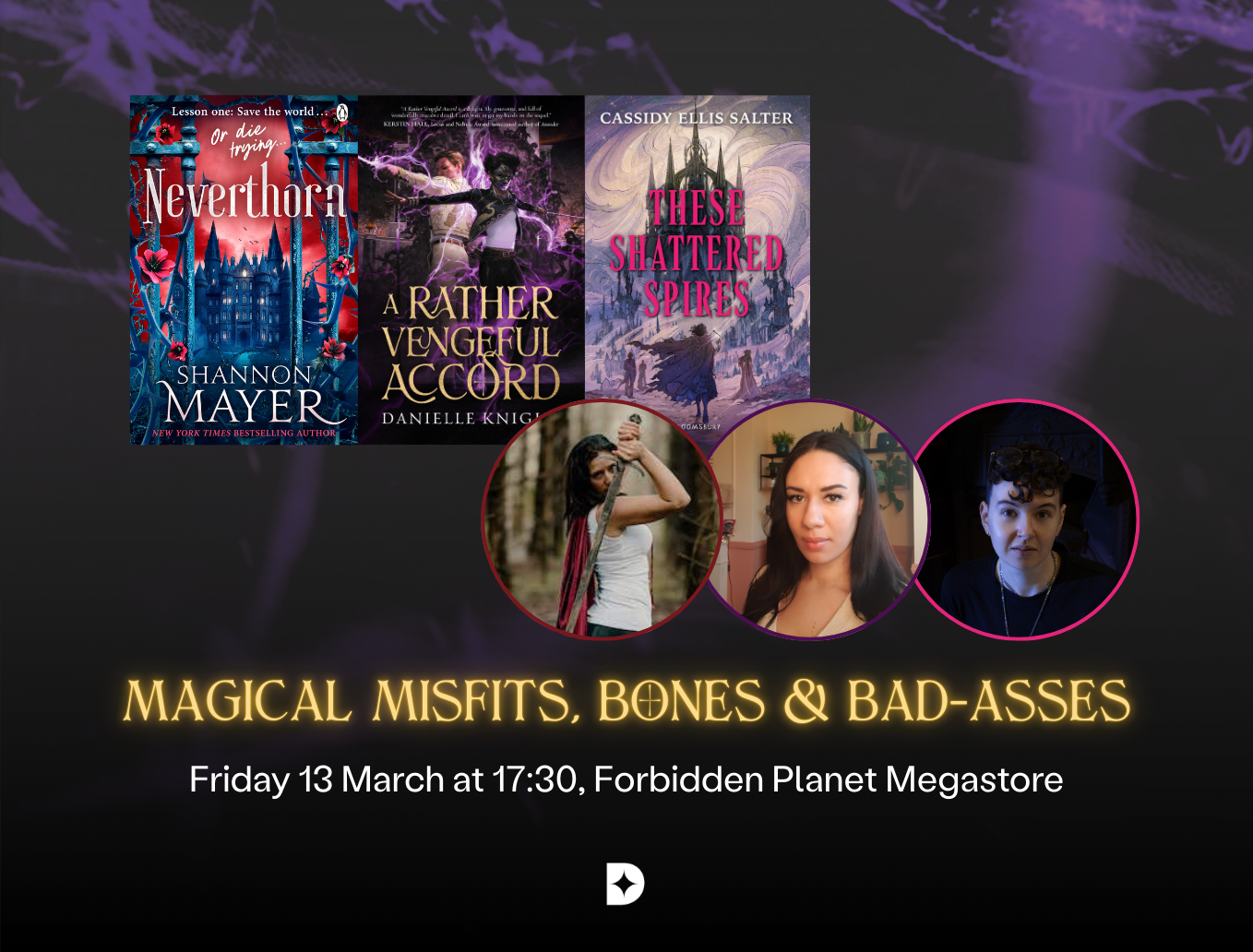 The talk and signing will be hosted on Friday 13 March from 17:30 at the Forbidden Planet Megastore in London. This will be a ticketed event with the ticket price redeemable against the cost of purchasing of any Shannon Mayer, Danielle Knight or Cassidy Ellis Salter books at the event. Tickets can be purchased for £5 + fees on the Forbidden Planet website.